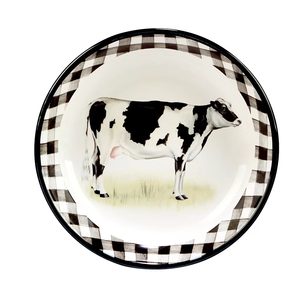 Give your rustic dining decor a fresh, new look with this Certified International On The Farm soup bowl set. A black and white checkered pattern and farm animal graphics create a classic farmhouse look.