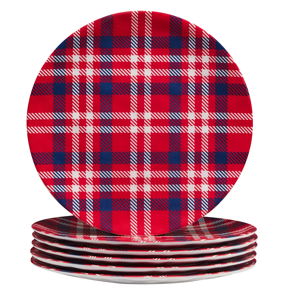 Create a festive tablescape for the Fourth of July and beyond with these Certified International Patriotic Plaid melamine dinner plates.