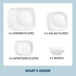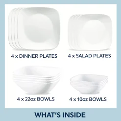 Set a table dinner guests won’t soon forget with this Corelle Boutique Square Vivid White lunch and dinner plate set.