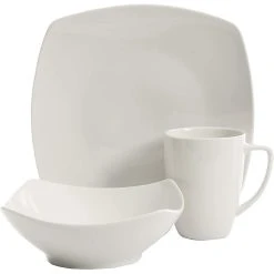 Gibson Zen Buffetware 12 Piece Square Dinnerware Plate, Bowl, & Mug Set, White