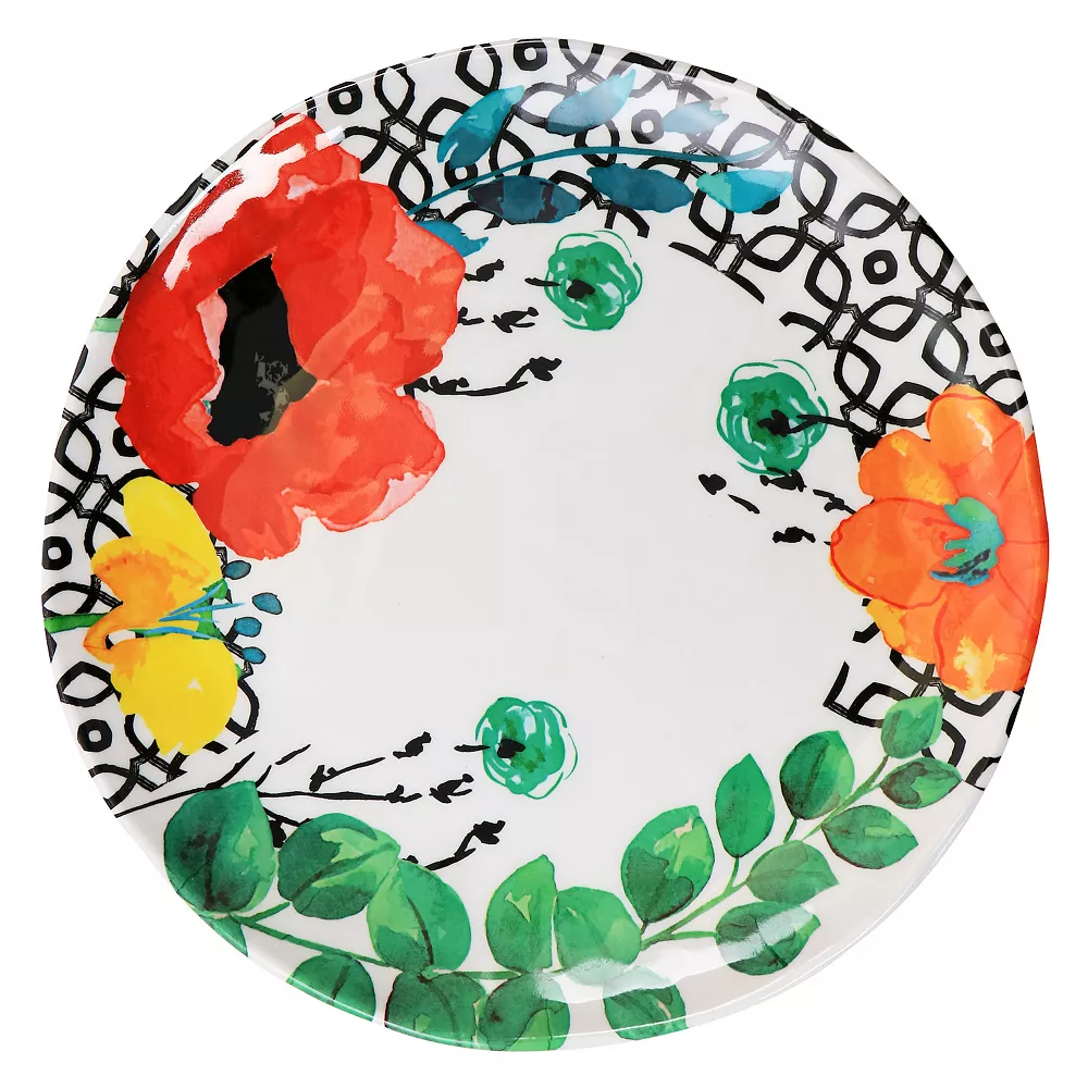 Beautify the dining table with the Grace 12 Piece Melamine Dinnerware Set by Elama. With a combination of bright colors and a beautiful floral design, this set it perfect for indoor and outdoor dining. With it’s hammered look, this melamine constructed set is shatter resistant and lightweight for long lasting convenience. For proper care do not microwave dishes, and wash in the top rack of dishwashers.