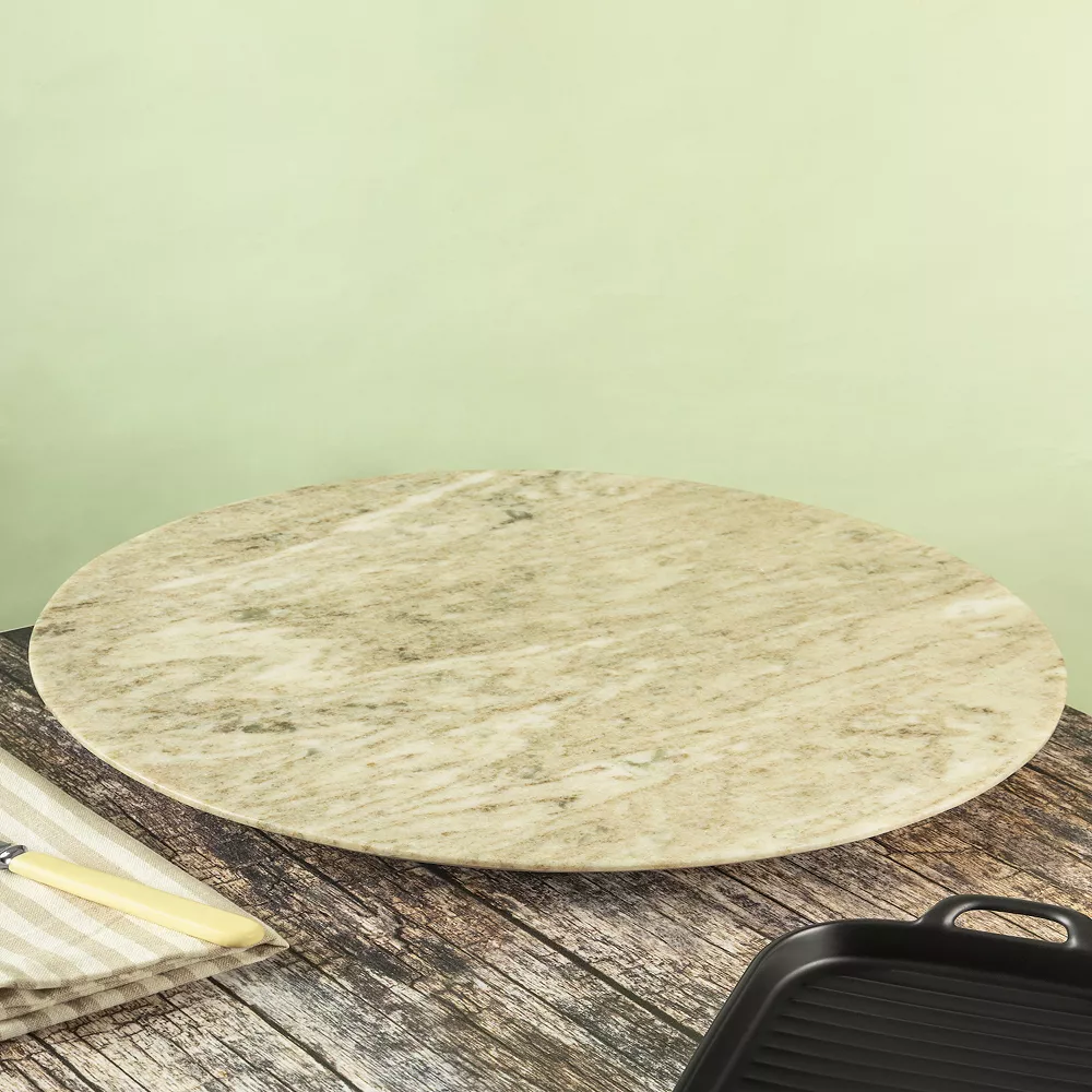 Add elegance to your table setting with our revolving marble lazy susan that keeps desserts, snacks and dips in easy reach of everyone at the table. Magnificent beige marble turntable with built-in mechanism allows for smooth rotation while icing a cake or serving.