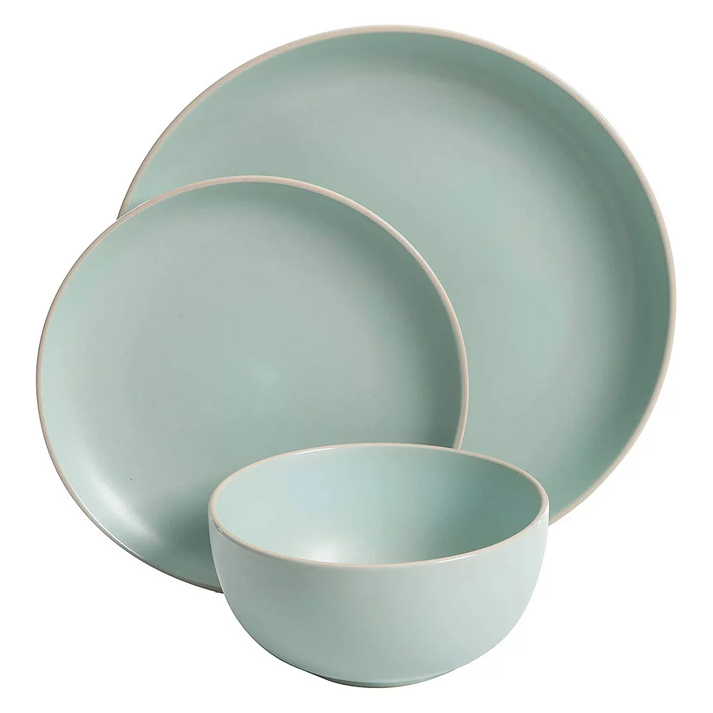 Each dishware piece is made of durable stoneware, and the coupe-shaped edges allow for a stackable and space-saving benefit. This basic dishware set brings the beauty of nature to your tabletop while also being dishwasher and microwave safe to make cleaning easy. This table dish set is made for long-lasting beauty and durability to ensure use for many dinners to come.
