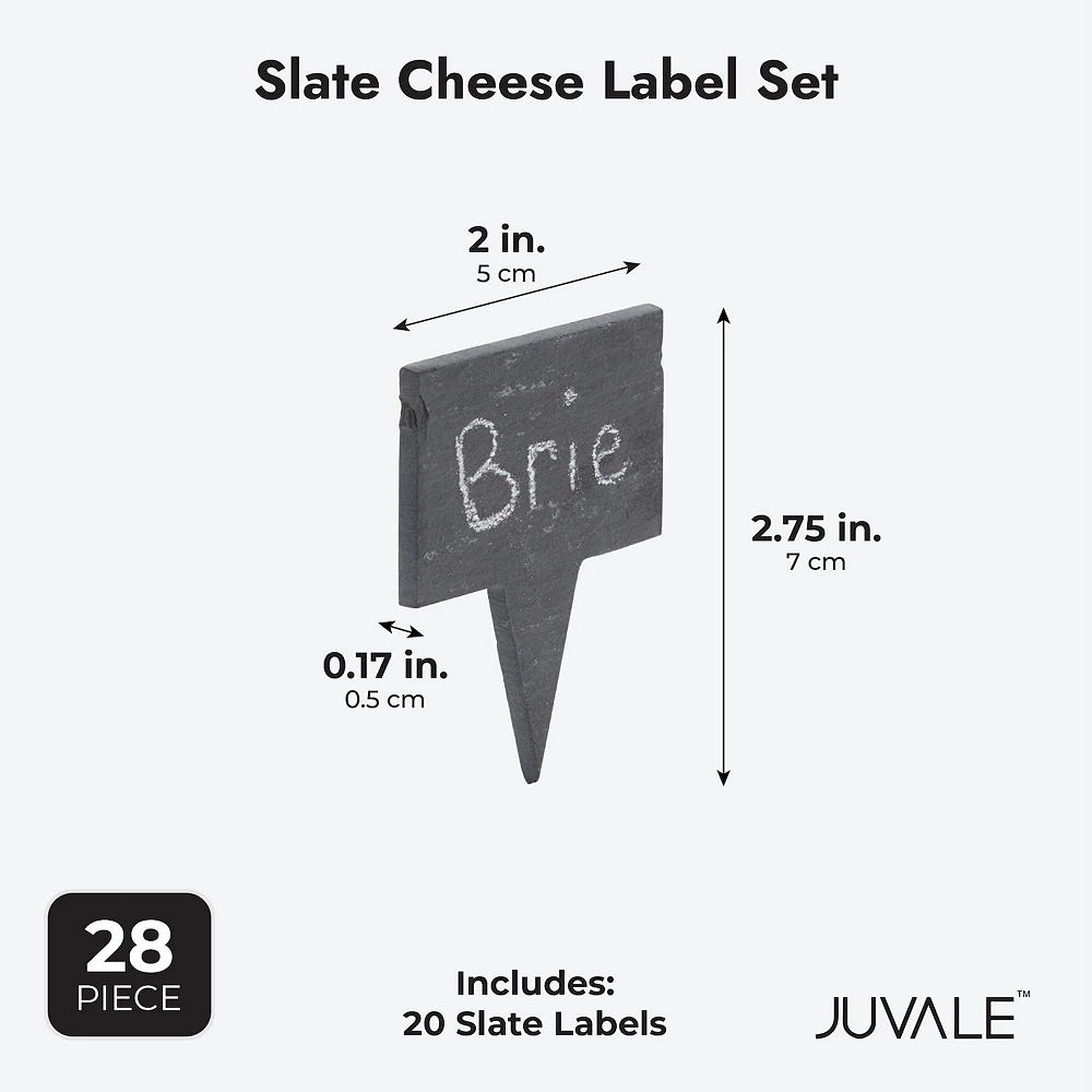 - What’s Included: Our set includes 20 cheese board labels, 6 pieces of white chalk, and 2 storage bags