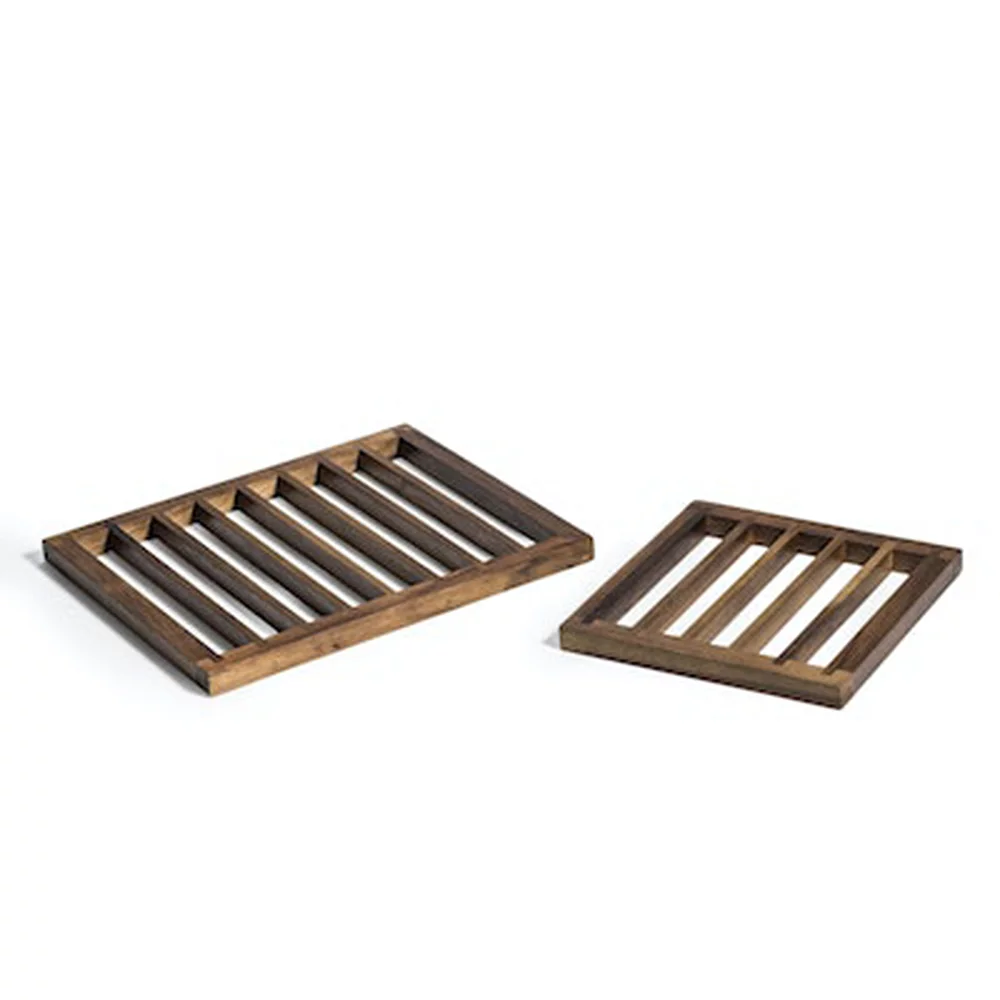 Set of 2 trivets perfectly sized will be used daily! Beautifully protect your table and countertops from heat or water damage. Set of 2 trivets can be used together or separately. Classic design focuses on the natural element of the wood. Made from environmentally friendly Acacia wood. Distinctive grain. Cleans up easily by wiping with a damp cloth