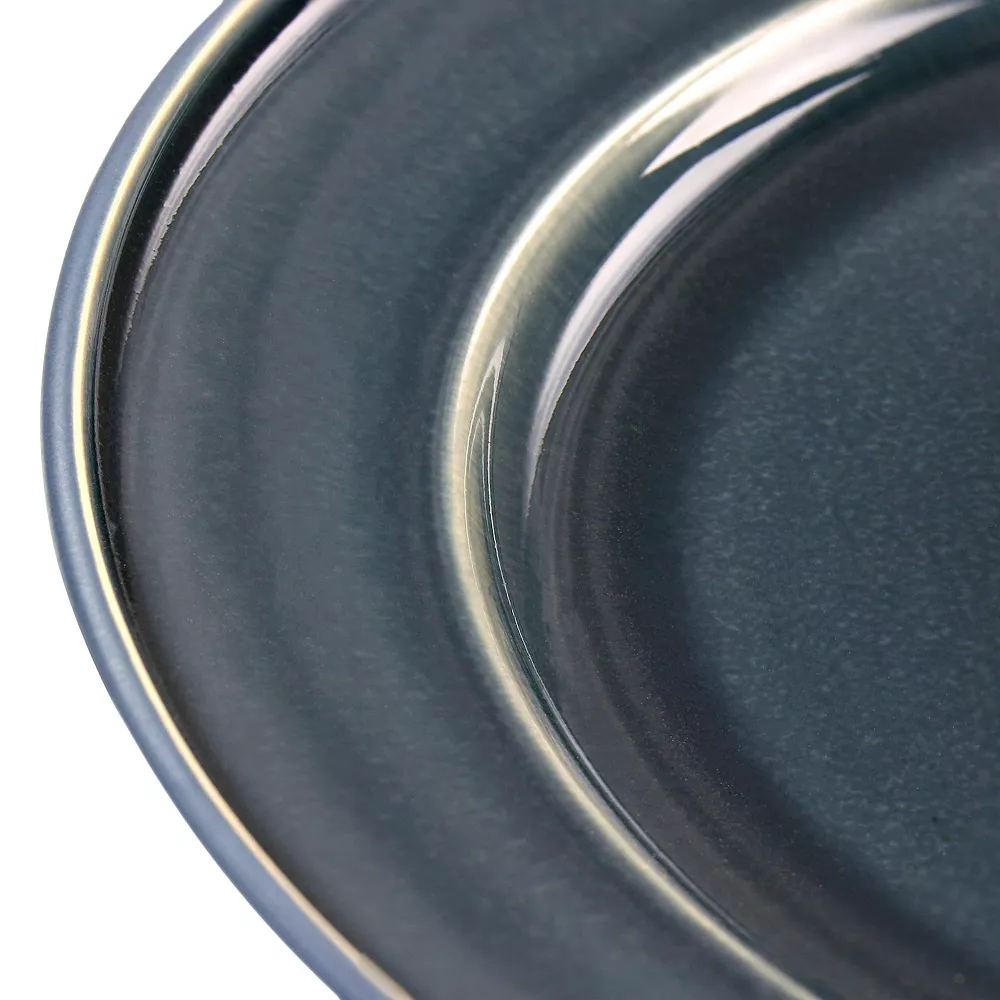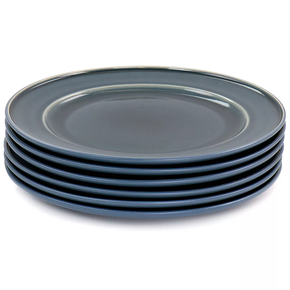 This set of 6 dinner plates is sleek, durable, and will add a modern look to your table. Constructed with stoneware for long lasting use. Outer coating has a matte finish while the food surface of these dishes is finished with a beautiful glossy reactive glaze. The reactive glaze process ensures that no two dishes are exactly alike, making each plate in this set unique. Dishwasher and microwave safe dishes for easy reheat and fast clean-up.