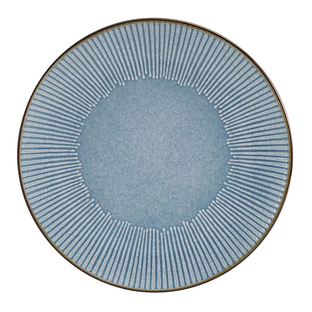 - Features an embossed pattern accented with a metallic rim and a bold color reactive glaze finish