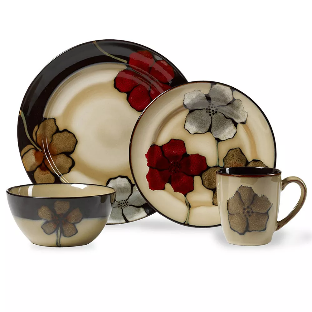 Featuring a pretty poppy motif, this dinnerware set by Pfaltzgraff is sure to please your dinner guests.