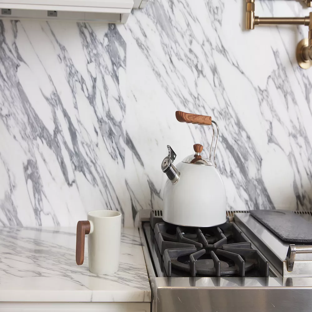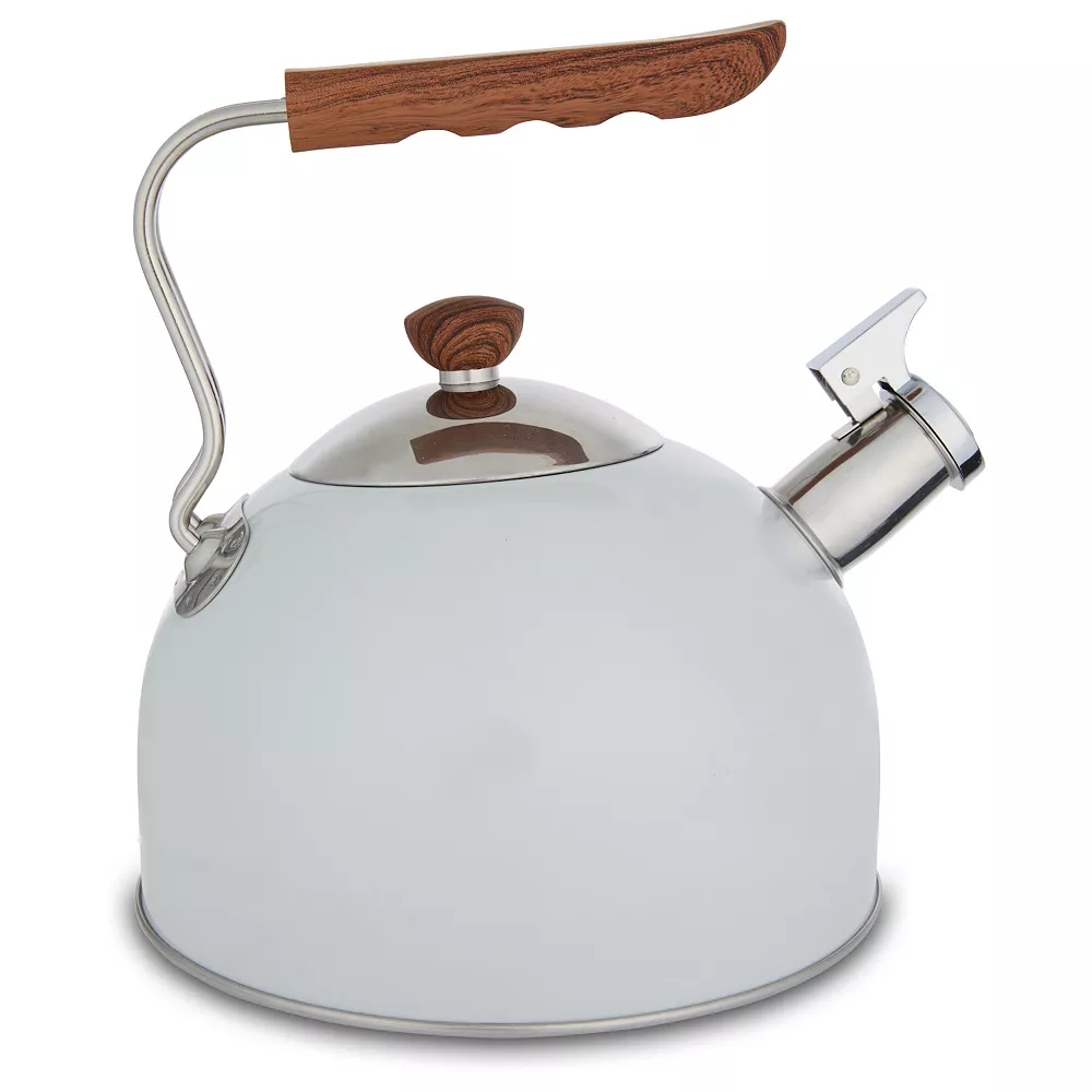 Phantom Chef combines sleek design and traditional performance in a stainless steel tea kettle, featuring an elegant color finish and ergonomic wood-look handle.