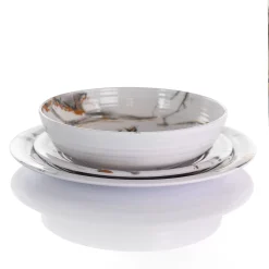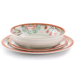 Elama Camellia 16 Piece Porcelain Double Bowl Dinnerware Set