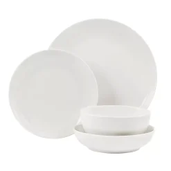 Elama Carey 18 Piece Round Porcelain Dinnerware Set In White