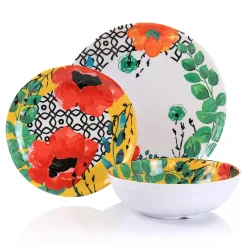 Elama Camellia 16 Piece Porcelain Double Bowl Dinnerware Set