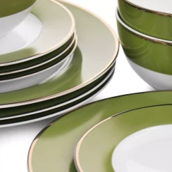Martha Stewart Red Rimmed Fine Ceramic 16 Piece Dinnerware Set
