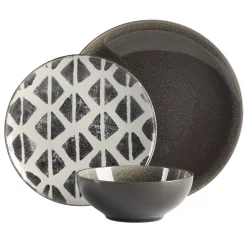 Spice By Tia Mowry Truffle Pepper 12 Piece Stoneware Dinnerware Set In Black And White