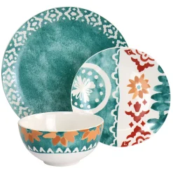 Spice By Tia Mowry Savory Saffron 18 Piece Fine Ceramic Dinnerware Set In Decorated Teal